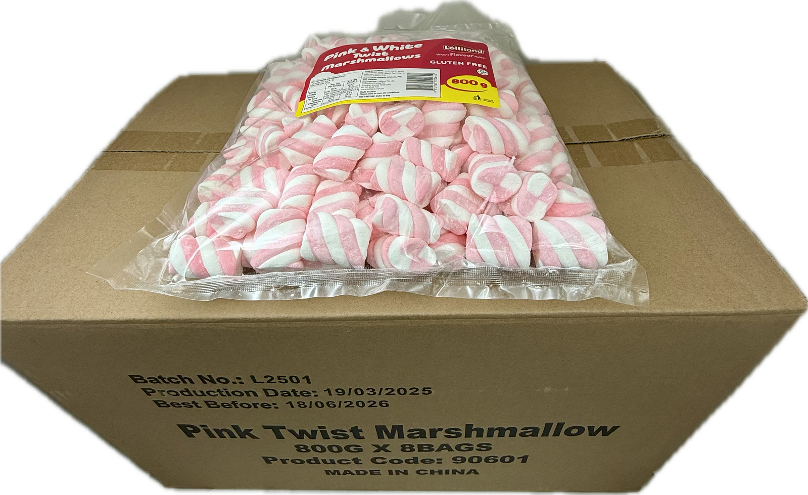 The Lolly Shop offers bulk lollies online wholesale from their warehouse in Australia. Our Pink & White Marshmallow Twists 800g – 8 pack Bulk Carton is a well loved favorite in Bulk Pink & WhiteTwist Marshmallows, Bulk Twist Marshmallows, Pink Marshmallows.