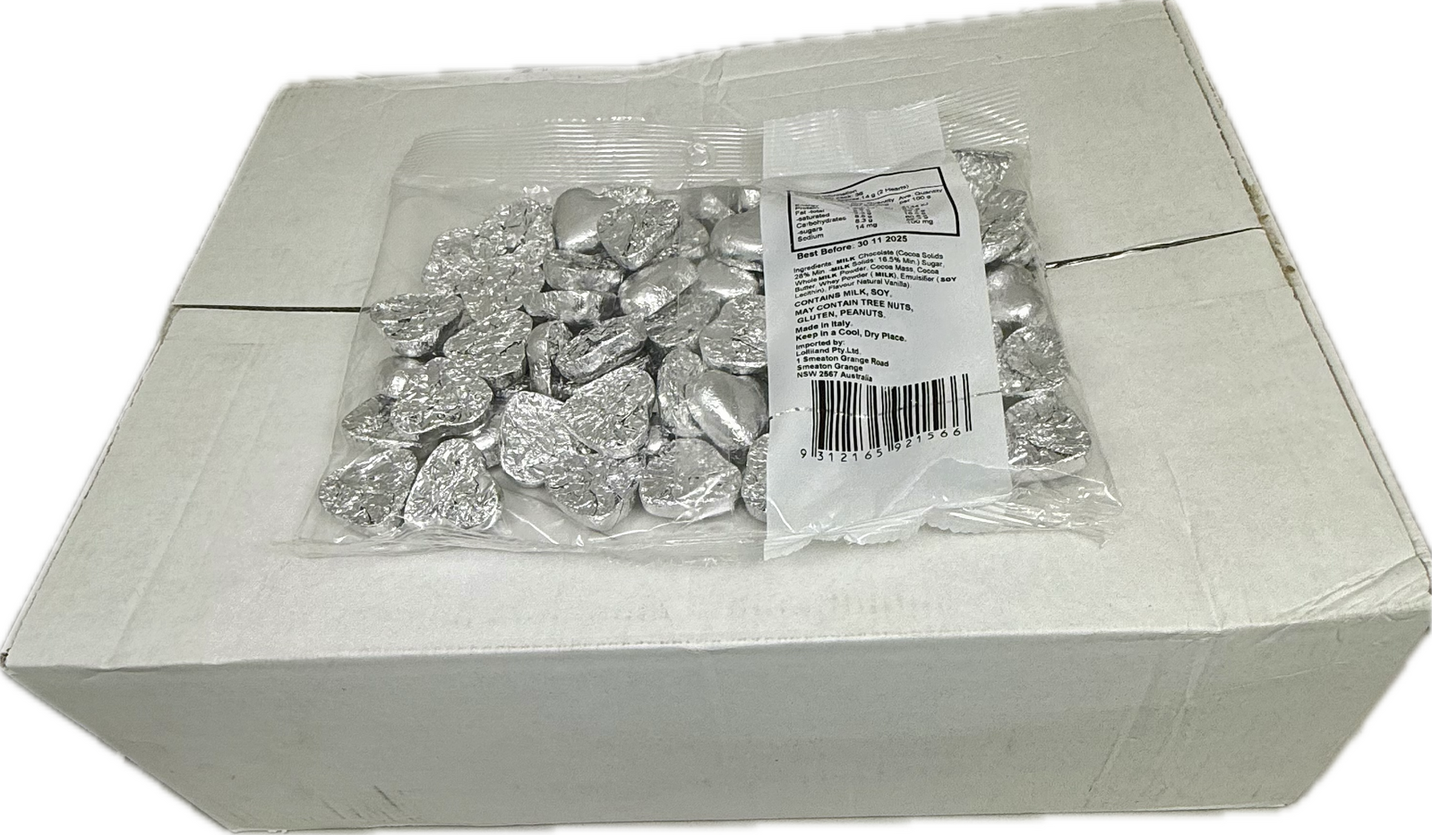 The Lolly Shop offers bulk lollies online wholesale from their warehouse in Australia. Our Silver Chocolate Hearts 500g Carton of 12 is a well loved favorite in chocolate, Silver Chocolate Hearts, Chocolate Hearts, bulk lollies, italian chocolates, choc made in italy.